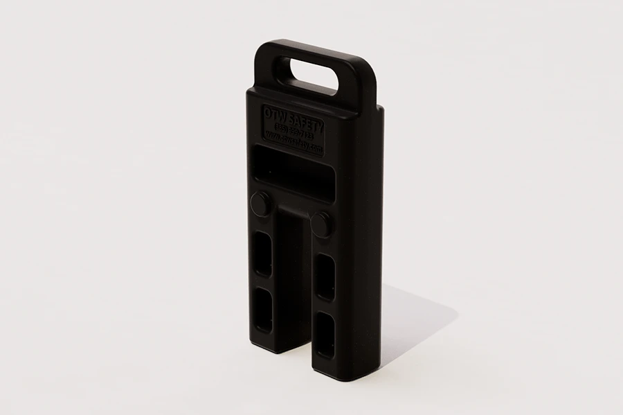 The crowd control weight slides directly onto OTW Billboard Barricades with zero tools and zero hardware, thanks to its custom-fit design and integrated carrying handle. Once in place, 18 lbs of durable rubber ballast lowers the center of gravity and anchors the barricade line against movement – without altering its footprint or overall appearance.